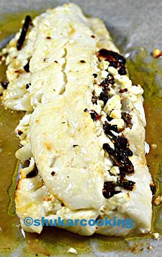 700 g de pavé de cabillaud 4 pétales de tomates séchées 50 g de feta huile d’olive Chauffer le four à 200°.