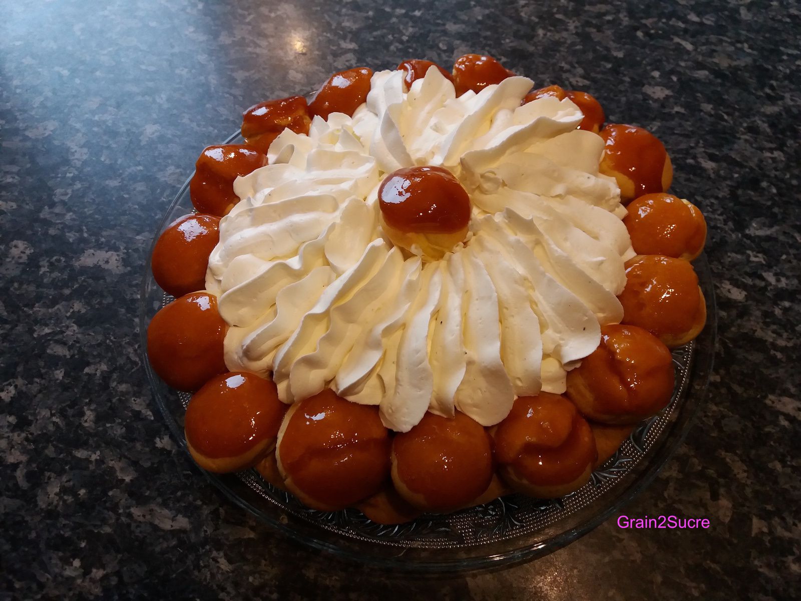 Voici mon premier Saint-Honoré! Il n'est pas parfait, j'y ai passé 3 heures, j'ai douté, j'ai galéré mais j'y suis arrivée! J'ai adoré le préparer! C'était très très bon! miam! la crème Chiboust est juste à tomber! Pour obtenir cette forme de choux j'ai.