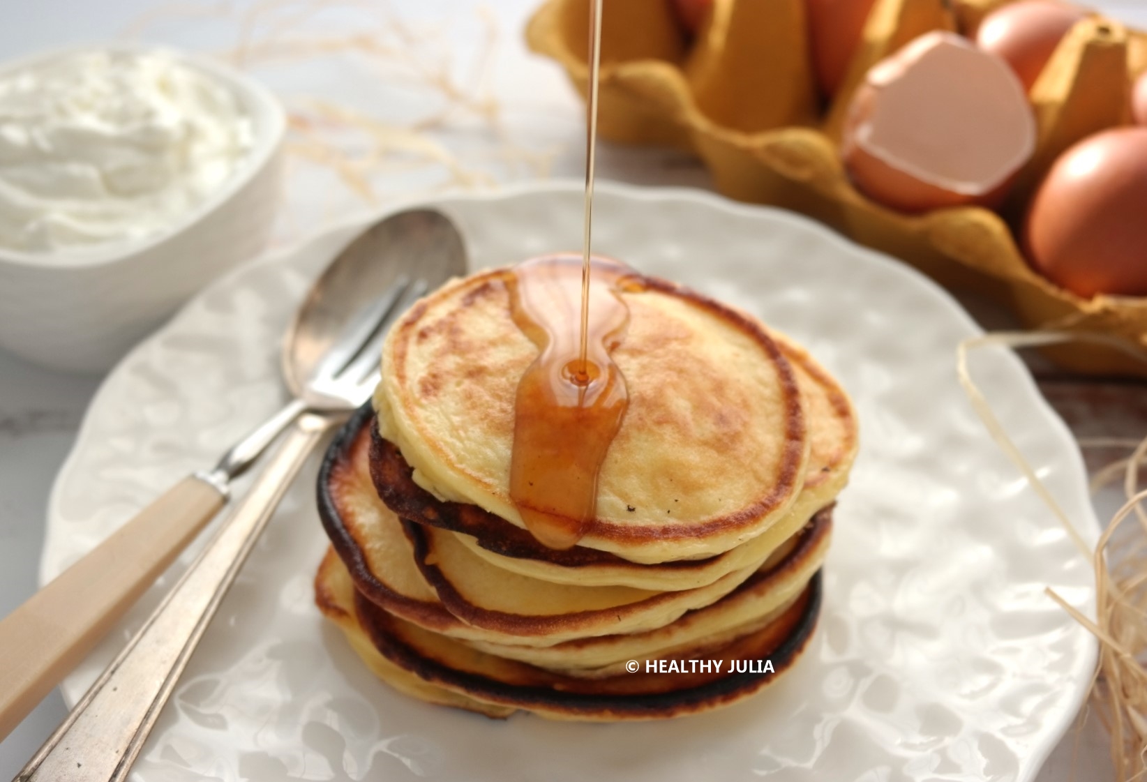 Pancakes légers au skyr WW, recette de savoureux pancakes légers sans matière grasse et sans sucre, facile et simple à réaliser