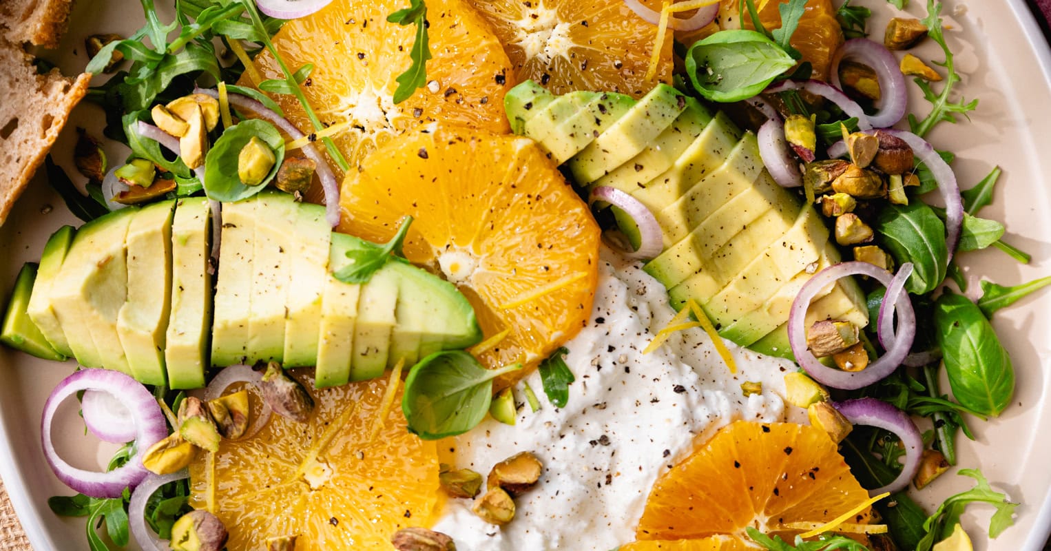 Cette recette de salade composée roquette-orange-mozza-pistache est issue d’un voyage en Sicile durant lequel j’ai découvert le pesto de pistache !
