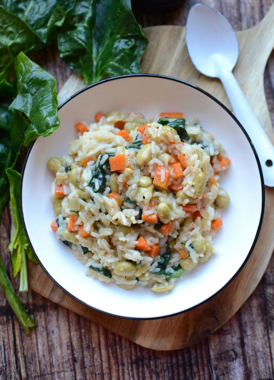 Oignons, feuilles et côtes de blettes, coulis de tomates et riz pilaf pour cette recette alcaline Cette recette de riz pilaf est largement végétalisée pour équilibrer les proportions entre végétaux (alcalinisants forts) 70% et riz (acidifiant faible).