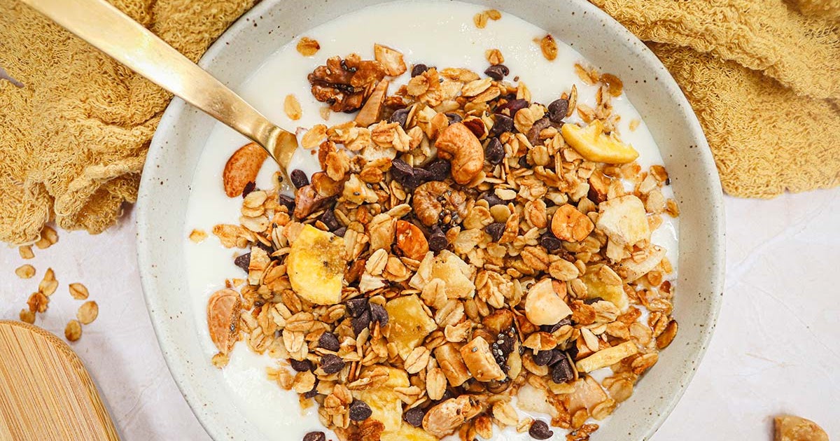 Granola maison : préparez un petit-déjeuner sain et gourmand avec cette recette facile et rapide à préparer.