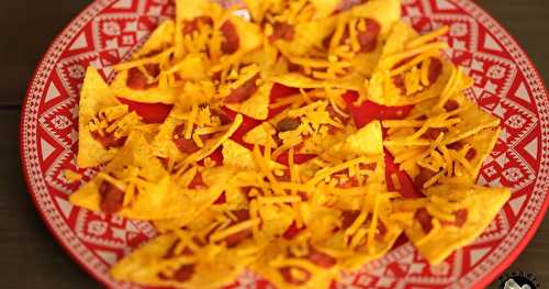 Une recette à base de chips garnis de chutney aux tomates et aux épices recouverts de fromage cheddar que l'on fait fondre à la dernière minute quelques secondes avant de passer à table.