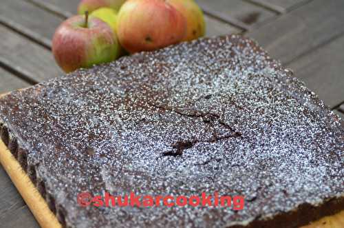 Recette de fondant au chocolat à la compote de pommes, sans gluten et sans lait.