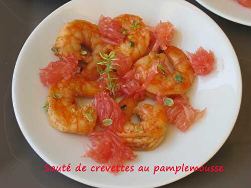 Un Sauté crevettes mariné dans le jus de pamplemousse et agrémenté de dés de chair de pamplemousse.