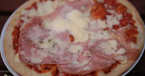 Pizza jambon mozzarella Une autre façon de faire une pizza, toute simplement avec des tranches de jambon et de la mozzarella.