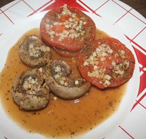 Rognons d'agneau et tomates à l'ail et origan Ingrédients : 3 rognons d'agneau, 2 tomates, 1 càc d'ail émincé, origan séché, vin blanc,.