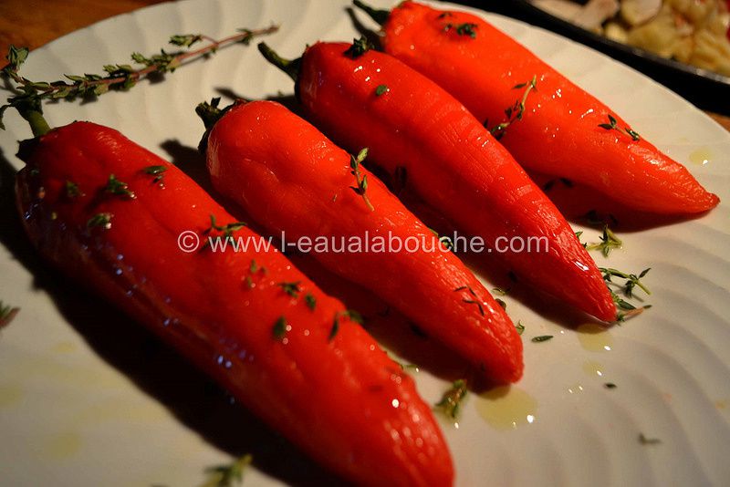 Poivrons Rouges Farcis au Chèvre Frais à l'Huile d'Olive et au Thym (pour 4 personnes) Ingrédients: 4 poivrons rouges allongés 4 càs env.