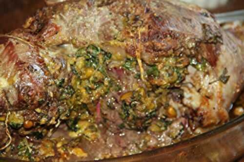 Pour Pâques pour changer, j'ai préparé ce gigot avec une farce absolument délicieuse.