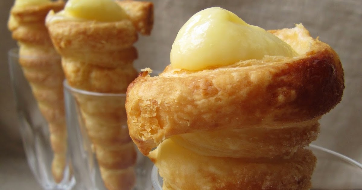 Voici une petite recette sympa de cornets à la crème pâtissière, cornets fabriqués avec de la pâte feuilletée épaisse.