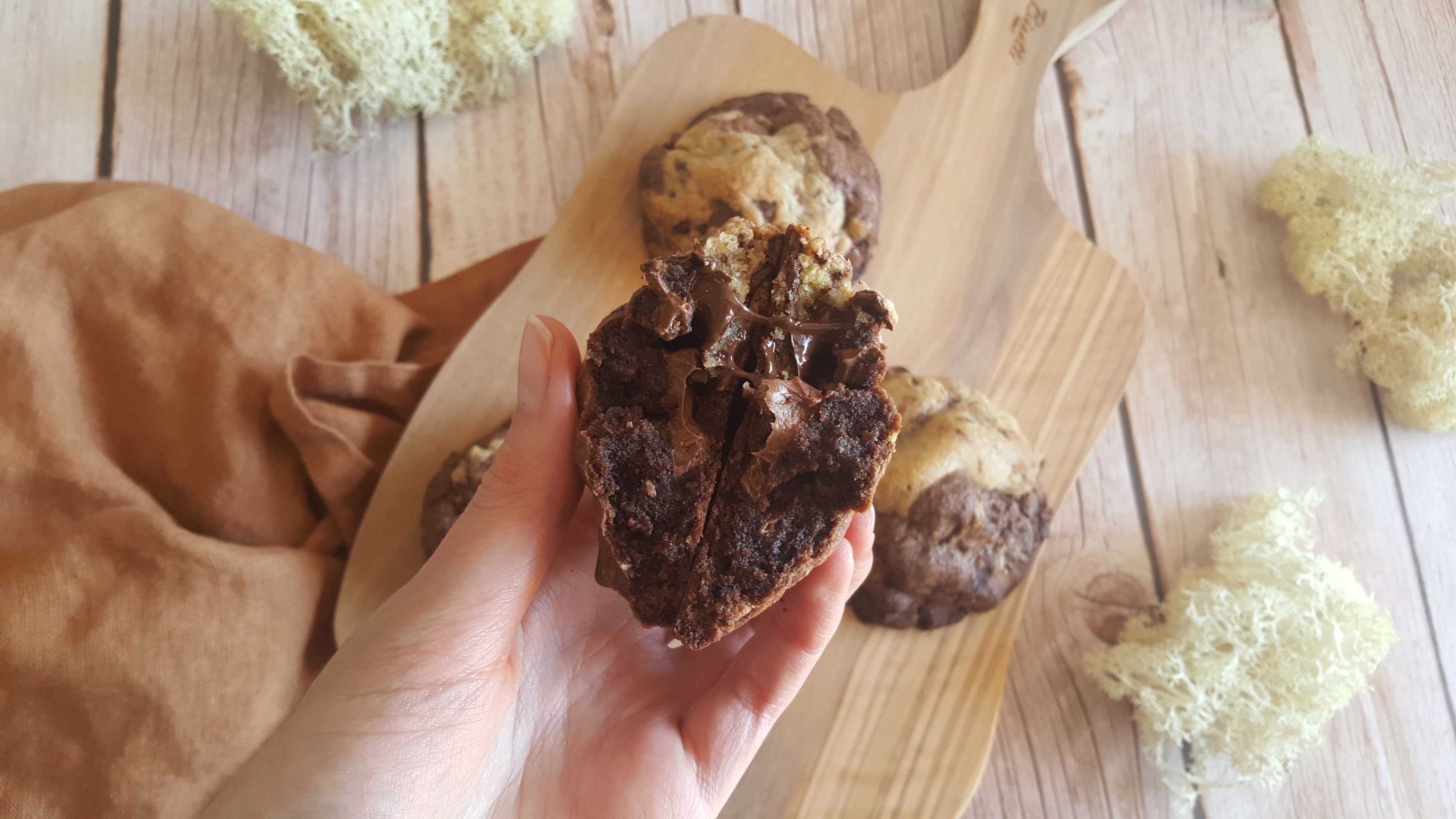 Avec le froid ambiant, j'ai envie de réconfort culinaire ! Des cookies encore oui, mais avec des marbrures de pâte à tartiner.