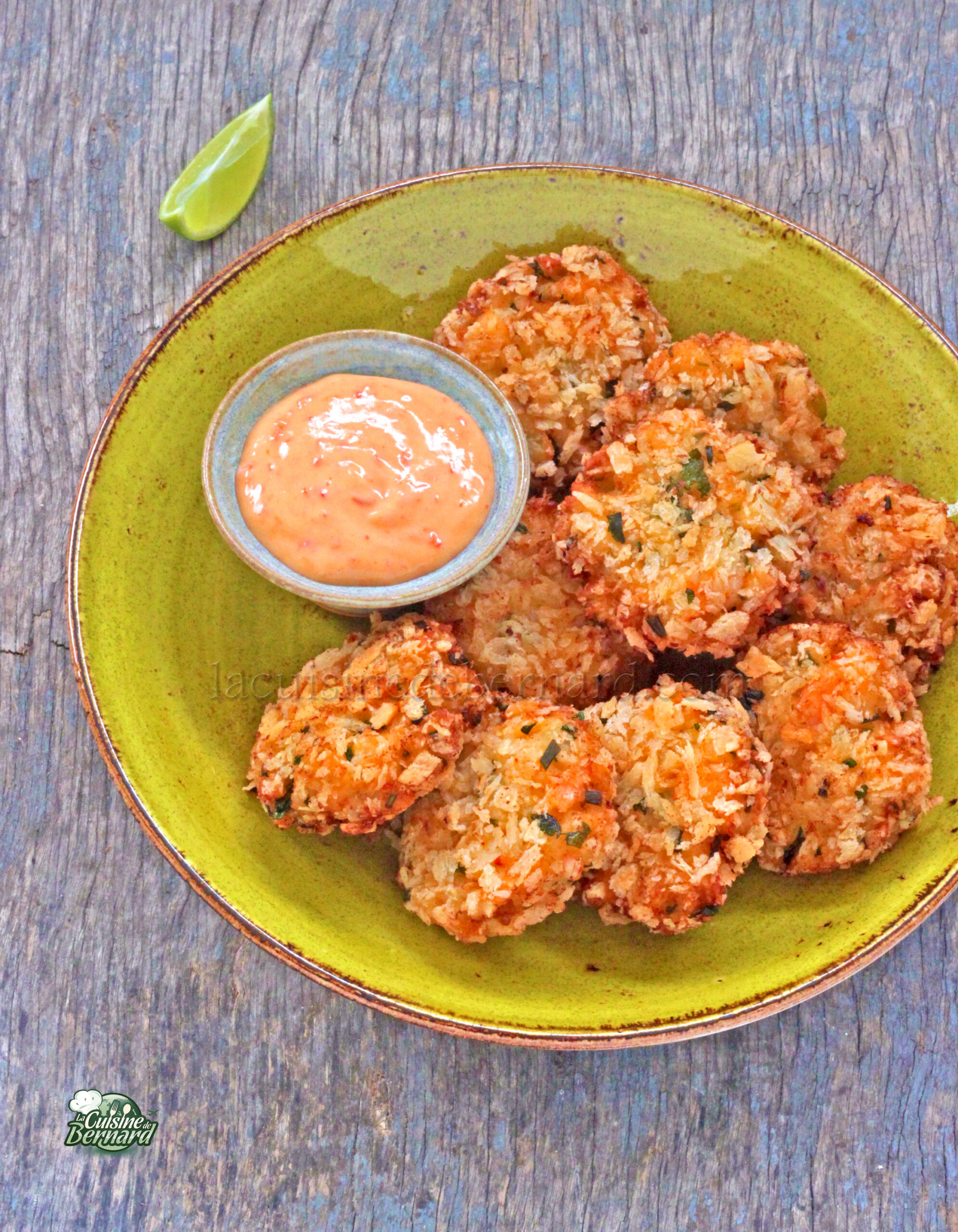 Attention ! Très très bon !! Je vous propose une variation des crabcakes du Maryland (recette que je vous ai déjà proposée), cette fois avec des crevettes et sur un thème plus asiatique, voire presque thaï.