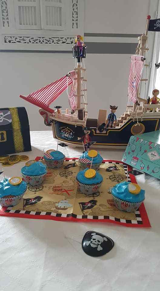 Pour les 6 ans de mon Justin, j'avais organisé un goûter d'anniversaire avec le thème pirate, donc pour ce faire, nous avons bien.