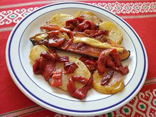 Ingrédients 3 à 5 filets de truite fumée Oignons rouge ou autres Pommes de terre en robe des champs Faire cuire les pommes de terre Dresser les assiettes avec les filets de truite fumée, les oignons coupés et les pommes de terre coupées en deux Mettre.