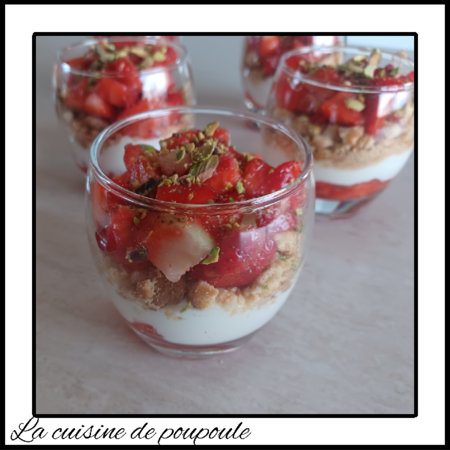 Parfait fromage blanc, citron et son biscuit à la pistache.