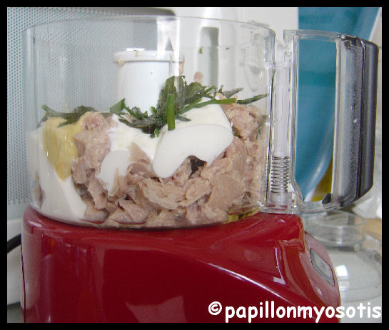 Pour 4 personnes: Pour la rillette : 1 boite de thon de 140gr 300 gr de fromage nature Mme Loïk 3 petits cornichons 2 c à café de .