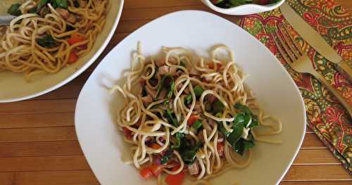 Il me restait deux médaillons de porc de notre réception de dimanche, j’ai eu l’idée de les recycler avec des nouilles instantanées.