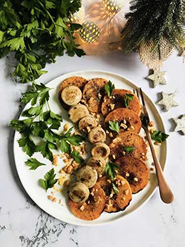 Des boudins blancs truffés escortés d'un chutney pommes et ananas et de quartiers de pommes caramélisés.
