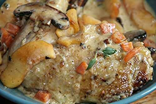 Pour changer du poulet rôti du dimanche, je vous propose le poulet vallée d’Auge à ma façon.