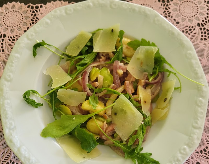 Ingrédients : pour 3 personnes 500 g de gnocchi à la betterave (ou gnocchi natures) 150 g de fromage de chèvre frais 1580 g d’allumettes de lardons fumés 15 cl de crème fraîche liquide entière 15 cl d’eau Sel et poivre du moulin Persil plat Préparation.