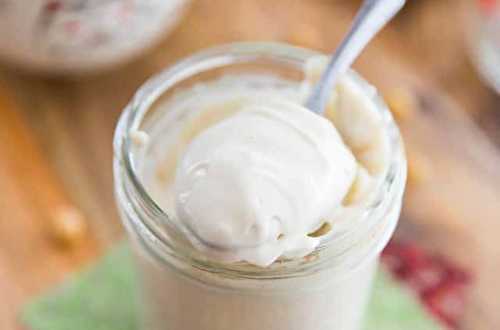Voici une délicieuse recette de mayonnaise maison, sans œufs qui est absolument parfaite pour les véganes :) Ça prend une minute à faire!