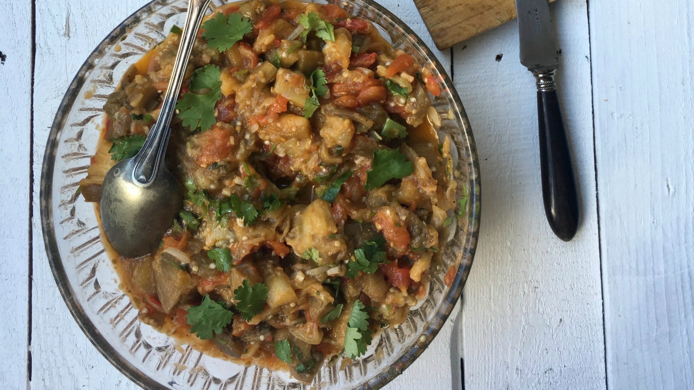 Recette de salade d’aubergine à la marocaine - Salade d\'aubergine à la marocaine Préparation de la recette : 45 min Pour : 3 ou 4 personnes Liste des ingrédients : 2 aubergines 5 tomates (on pourra utiliser des tomates séchées mais…
