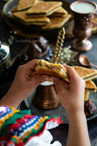 Pour le goûter du jour j’ai réalisé une spécialité bien de chez moi, les bradj ou mbardja : galette fourrée à la pâte de dattes (ghers).