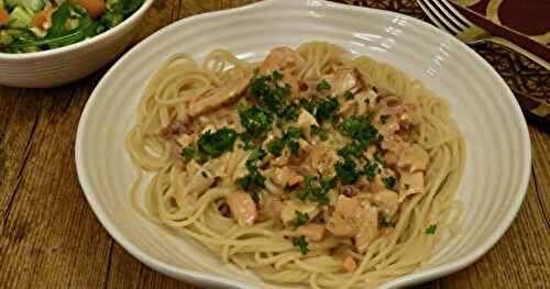 Pâtes aux 2 saumons et crème à l'estragon J'ai cuisiné ce plat avec ce qu'il y avait à la maison.