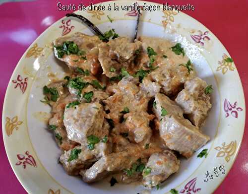 Une délicieuse recette, avec sauté de dinde, carottes, échalotes, ail, vanille, crème fraîche, bouillon de volaille, persil, huile d’olive D’après une recette vue sur le site 750g