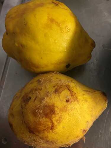 Comme je l'expliquais dernièrement, après pâte de coing , gelée , confiture et conserves , j'ai congelé des coings préalablement cuits au f.