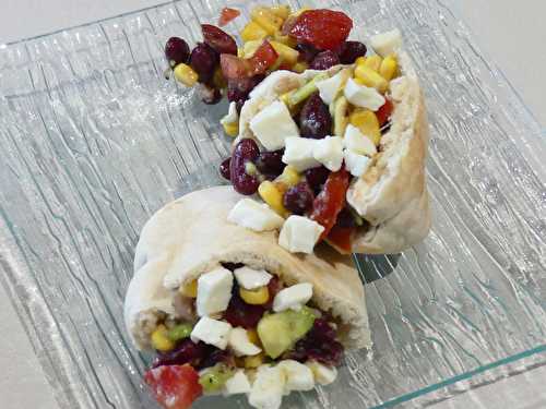 Une bonne recette de salade originale et rafraîchissante pour l’été qui est bien là !! le tout servie dans un pain pita.