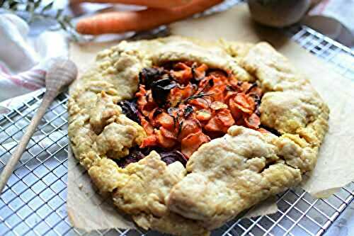 On dirait du vitrail! Sur l'appareil à quiche (3 oeufs, un soupçon de lait de riz) il y a des tranches de betteraves et des carottes de tou.