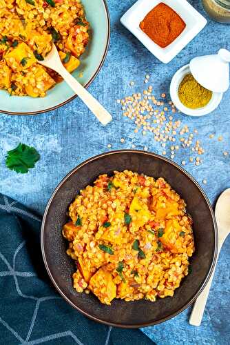 Recette d'un parmentier végétarien aux lentilles, patates douces, noix de coco et épices colombo