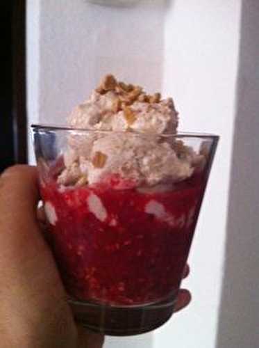 Bonjour au mois d'août quand j 'ai fais ma 2 Úme charlotte il me restait de la mousse chantilly et du coulis de framboises maison.