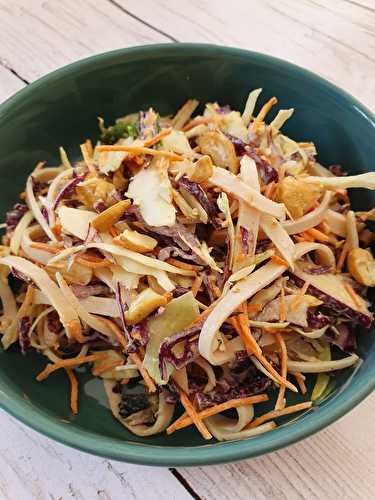 J'hésitais à appeler cette salade coleslaw car pour moi le coleslaw c'est une salade de chou blanc et de carottes assaisonnée de mayonnaise.