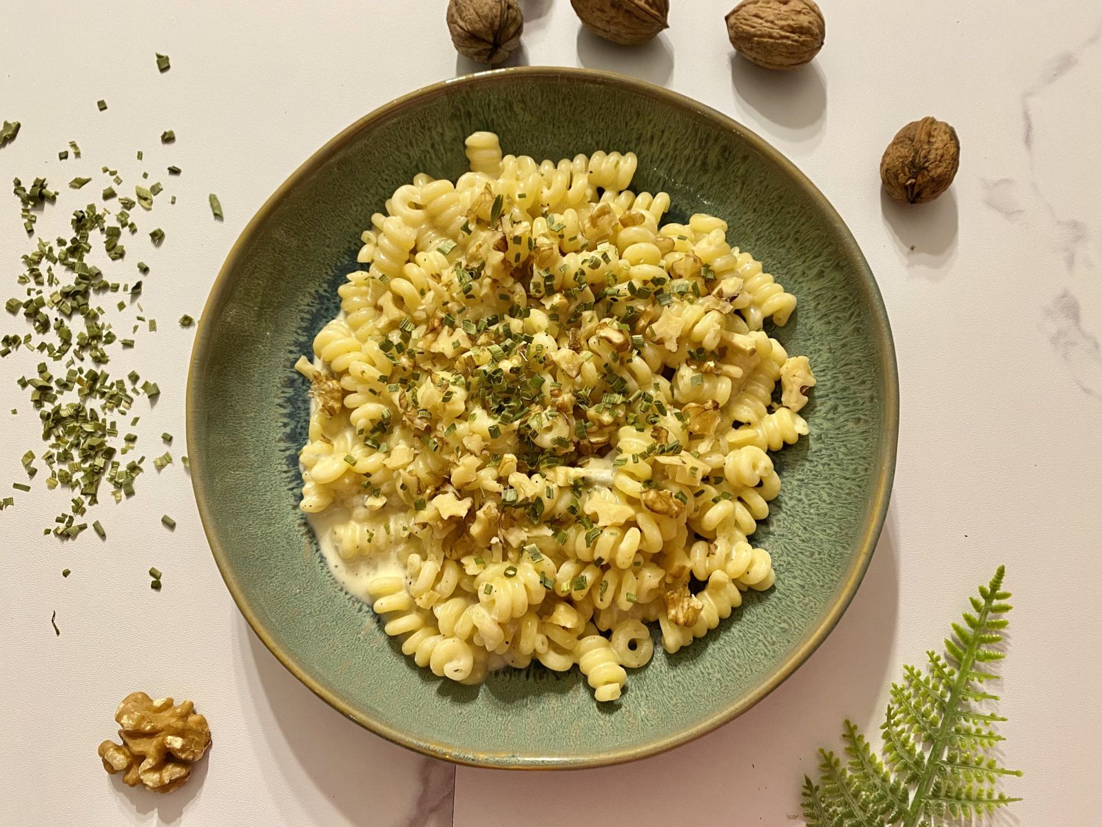 Les pâtes au saumon, on adore ça! Ici, on prend tout frais: les épinards crus et le saumon du poissonnier! Mmh, tellement bon! La petite sauce ciboulette toute légère apporte onctuosité à ces pâtes…