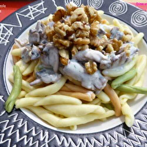 Voici un plat de pâtes inspiré de Julie Andrieu, alliant le gorgonzola à la noix et à la ciboulette.