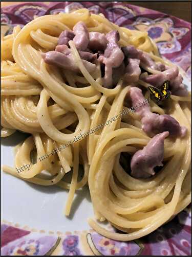 INGREDIENTS : Pour 4 personnes 200 gr de spaghettis avant cuisson 20 cl de vin rouge 20 cl de jus de cuisson des spaghettis 150 gr de poitrine fumée 3 échalotes huile d'olive 40 gr de concentré de tomates sel - poivre PREPARATION : Faire cuire les spaghettis.