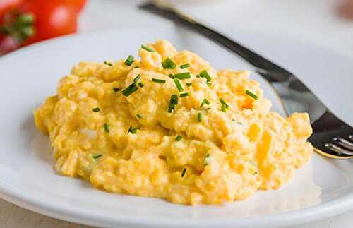 Oeufs brouillés au chèvre frais WW, un savoureux plat léger à base d'oeufs et de fromage de chèvre, facile et simple à réaliser