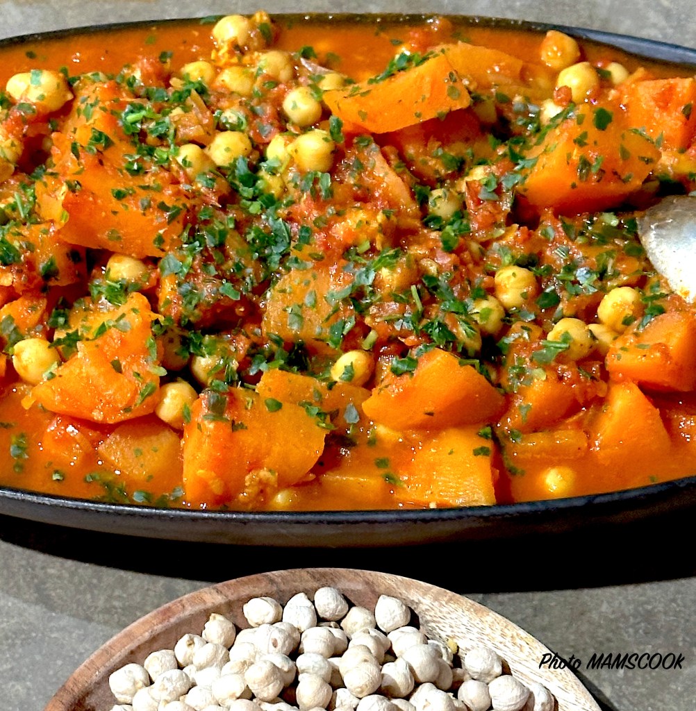 Ingrédients 500 g de patates douces 1 boîte de tomats pelées (environ 400 g) 1 boîte de pois chiches (environ.
