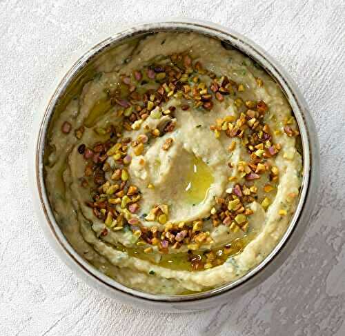 C'est un houmous presque classique, avec juste un petit twist : les traditionnels pois chiches sont remplacés par des haricots blancs.