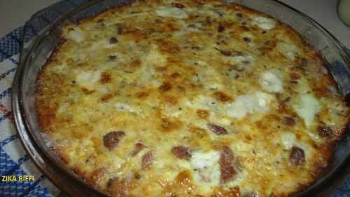 Le tajine jben authentique du terroir bônois, sorte de gratin à base de viande d'agneau coupée en petits dés, fromage et œufs en sauce blanche, avec l