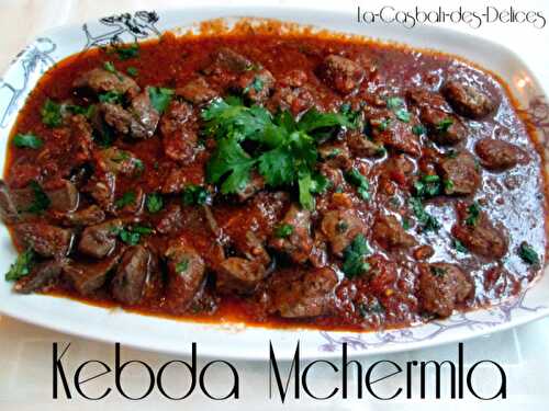 Présentation du foie d'agneau à la marocaine (kebda Mchermla) Je vous propose aujourd'hui une recette de cuisine typiquement marocaine, le Kebda Mchermla qui est en fait du foie d'agneau en sauce à la marocaine.