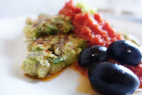 Excellente omelette de courgettes que je sers avec une fondue de tomates pour changer , cuisine facile pour débutants et étudiants, en repas du soir