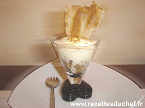 Un joli dessert avec peu de choses… Pour 2 personnes Pour l'espuma à faire en premier 30g de chocolat blanc 10cl de crème liquide graines de vanille pour le gâteau de pommes 2 pommes pruneaux un peu de Porto ou Moscatel ou autre vin cuit Pour la tuile.