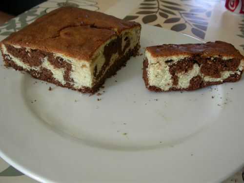 J'avais déjà fait des marbrés avec du cacao, mais là, je voulais tester la différence avec le chocolat noir et le chocolat blanc, c'est une recette que j'ai prise là, mon mari en était ravi, il me dit que cela ressemble beaucoup au savane de Papy Brossard.