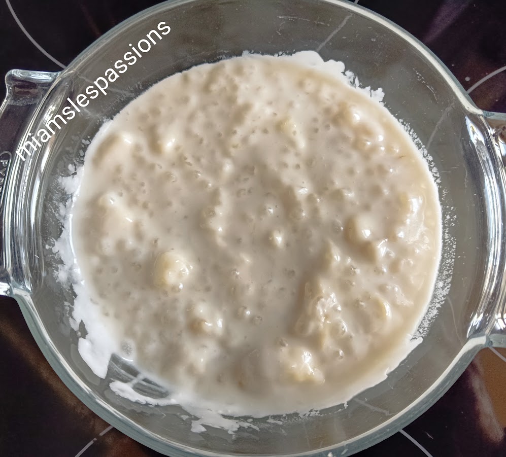 1 pot de lait de coco, 400l de lait, 130gr de perle et 4 cas de sucre faire cuire a feux doux 30min environ
