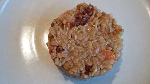 Dans mes cadeaux de fin d’année j’avais mis ce paquet : Dans l’ordre mettre dans une pochette ou un bocal : 140 g de lentilles de Corail , 65 g de riz basmati , 22 g de tomates sé…