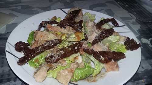 Ingrédients: Des feuilles de scribesdes échines de porcdes tomate confite a l'huiledu parmesande la sauce vinaigrette a la tomate confite Préparation: Laver couper et disposé les feuilles de sucrines dans les assiettes.