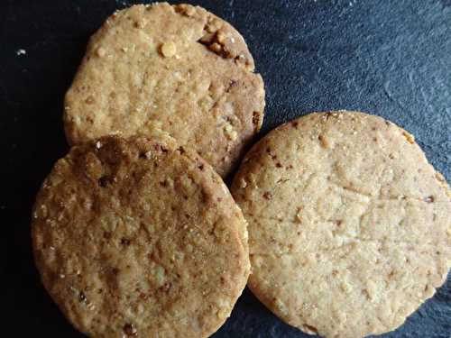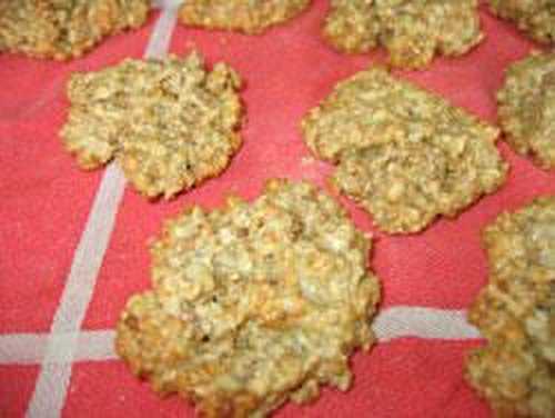 Ingrédients : - 50g de farine - 75g de flocons d’avoine - 50g de graines de sésame grillées - 50g de sucre - 1 œuf - 3cs d’huile de sésame - 3cs d’eau J’avais racheté des flocons d’avoine depuis que Croquette m’avait fait envie avec ses Choc’oast.